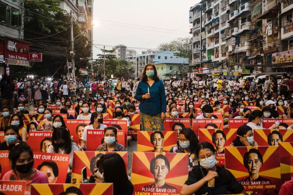 After the Myanmar military staged a coup on February 1, women in Myanmar have been at the forefront of the protests nationwide. Since the start of this coup, the military has arbitrarily detained over 3,300 pro-democracy protesters.