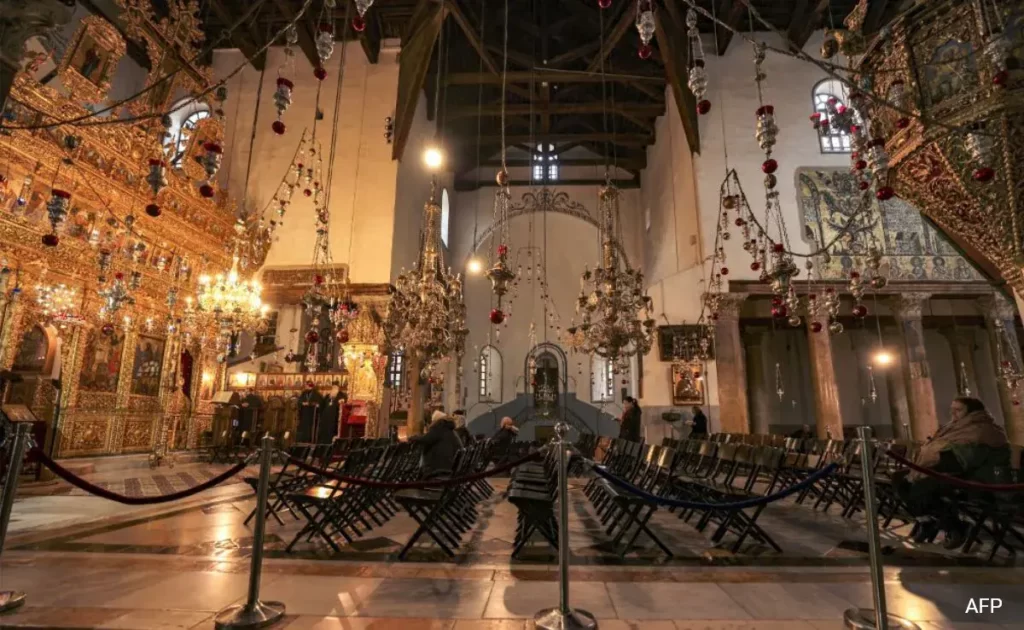 Bethlehem’s Manger Square, a large paved space in front of the Church of the Nativity that usually serves as a focal point for Christmas celebrations, was quiet and almost empty, as were nearby streets where most souvenir shops were shuttered.