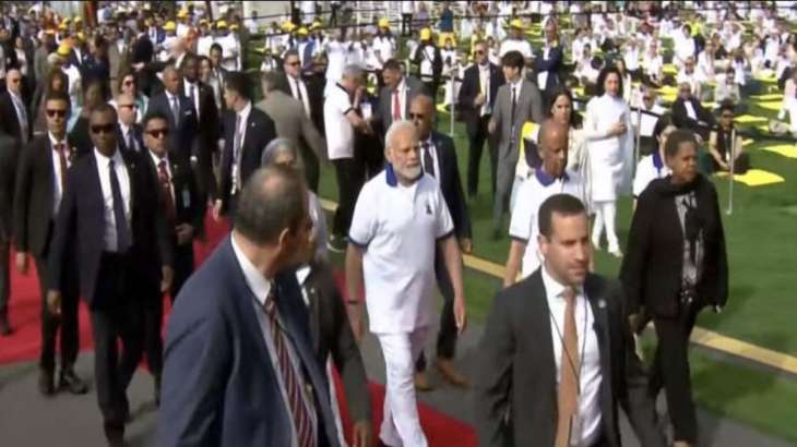 Prime Minister Narendra Modi is leading the Internatioanal Yoga Day celebrations with foreign dignitaries, bureaucrats and members of the Indian diaspora at the United Nations Secretariat in New York on Wednesday.