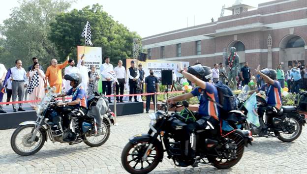 120 people, including 10 women, are proceeding on a 75-day tour of the country on 75 motorcycles as part of the Azadi ka Amrit Mahotsav. These motorcyclists will travel through 34 States and Union Territories, including six international borders, travel to more than 250 districts and travel a long distance of 18,000 km in 75 days, promoting the AzadikaAmritMahotsavat 75 important places and will return to the national capital.