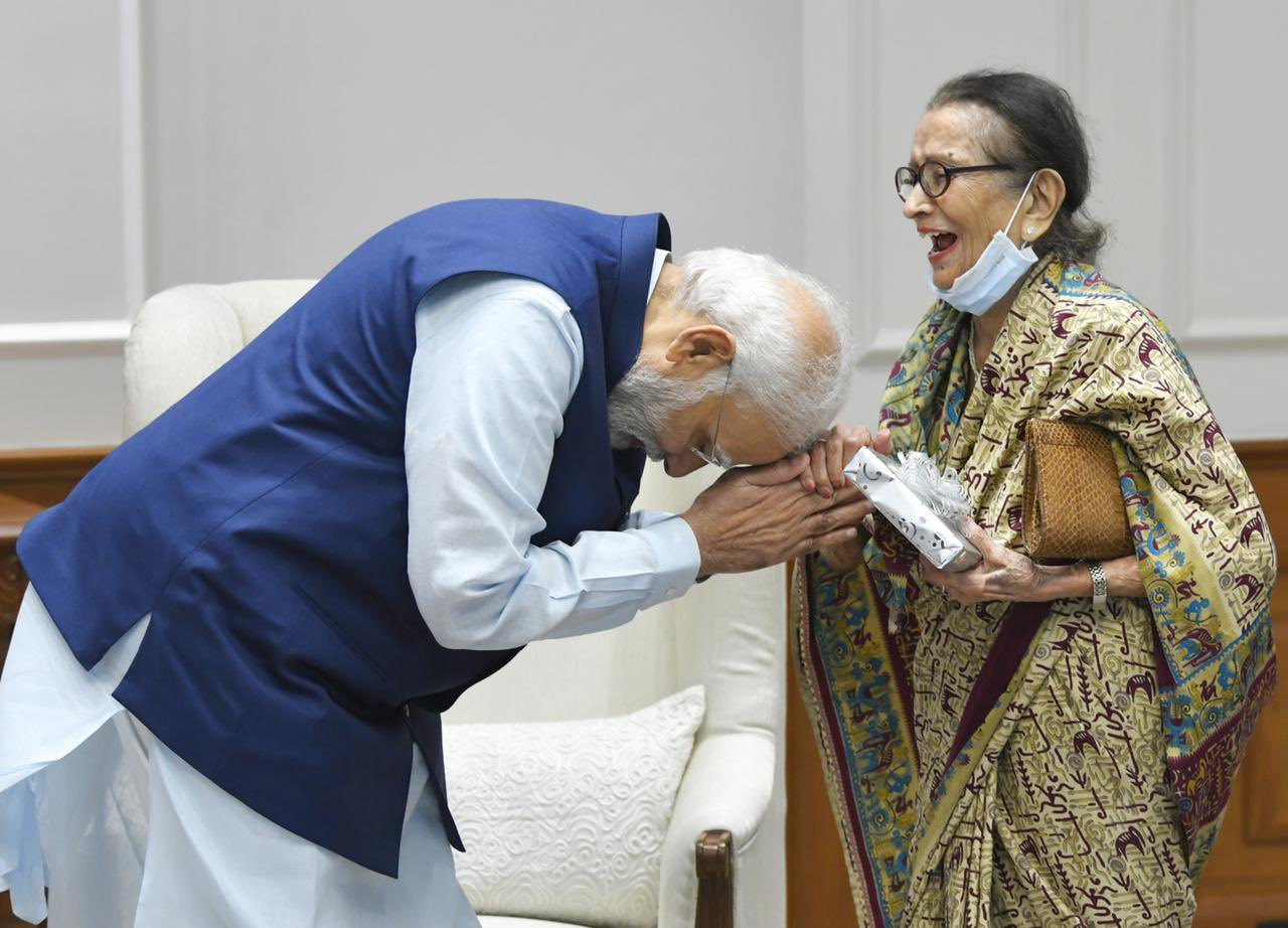 “Today I had a memorable interaction with Smt. Uma Suchdeva Ji. She is 90 years old and is blessed with great vigour and a spirit of optimism. Her husband, Colonel (Retd) HK Suchdeva was a widely respected veteran. Uma Ji is the aunt of General @Vedmalik1 Ji.”