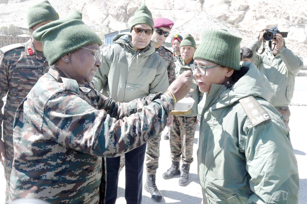 They face severe weather conditions. In difficult situations like heavy snowfall and minus 50 degrees temperature, they remain deployed at their front with full devotion and vigilance. They present extraordinary examples of sacrifice and tolerance in protecting the motherland. She told soldiers that all Indians are aware of their sacrifice and bravery and we respect them.