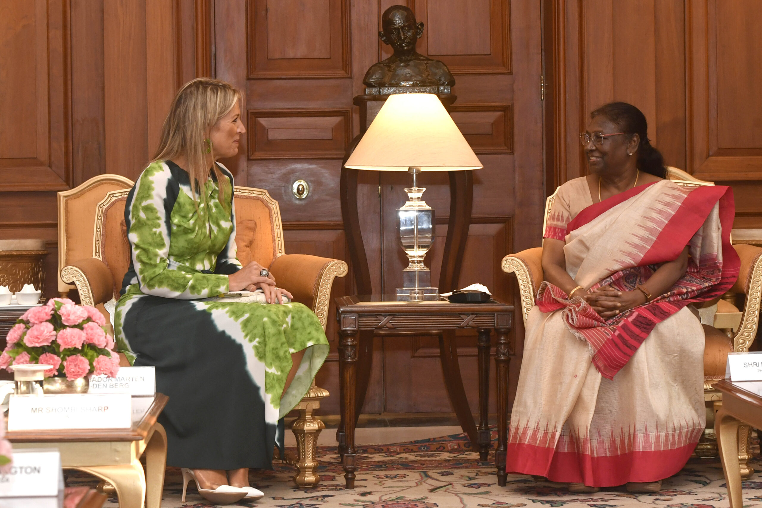 Her Majesty Queen Máxima of the Netherlands called on the President of India, Smt. Droupadi Murmu at Rashtrapati Bhavan. The President welcomed Queen Máxima and discussed about the deepening of the bilateral relations between India and the Netherlands.
