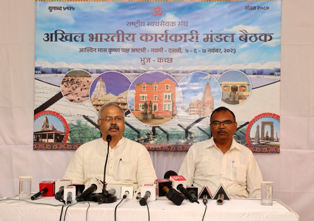 The annual Akhil Bharatiya Karykari Mandal Baithak of Rashtriya Swayamsevak Sangh (RSS) is being held in Bhuj (Kutch region of Gujarat) on 5, 6 and 7 November 2023. The meeting will start at 9 am on Sunday and will culminate at 6 pm on Tuesday. All together 381 workers from across the country representing Akhil Bharatiya Karyakarini Baithak are expected to be present.