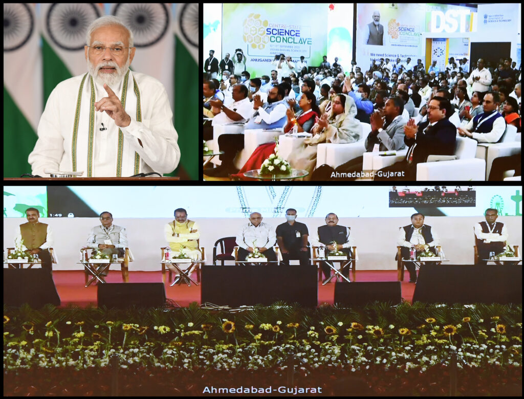 Inaugurating the ‘Centre-State Science Conclave’ in Ahmedabad via video conferencing, he emphasized that Science is the basis of solutions, evolution and innovation. And, it is with this inspiration, that today’s new India is moving forward with Jai Jawan, Jai Kisan, Jai Vigyan as well as Jai Anusandhan.