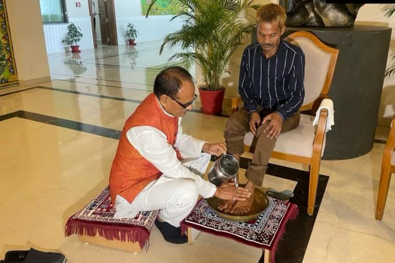 Madhya Pradesh Chief Minister Shivraj Singh Chouhan’s gesture of washing the feet of Dashmat Rawat, the tribal victim of urination incident in Sidhi, is evoking mixed reaction on social media – some appreciating it and some calling it poll-year theatrics.