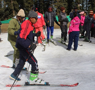 Under the guidance and supervision of a resource team from The High-Altitude Trekking & Skiing Centre, Narkanda. The Camp, once again, as in all snow sport camps, rolled out the meticulous process of issuing sport equipment. The process calls for a briefing by itself, apart from focussing on skill development.
