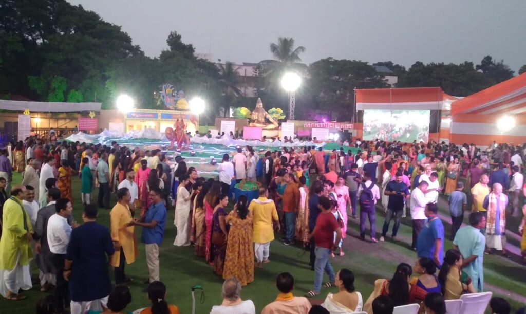 Organised under the aegis of Pragnya (wisdom, a prominent cultural organization), the five-day spiritual extravaganza was inaugurated by veteran Sattriya dance exponent Nrityacharya Jatin Goswami on 19 October by lighting the sacred lamp in presence of Taren Boro (former president of Bodo Sahitya Sabha), Jitul Sonowal (president of Pragnya), Manmath Barua (president of Bharat Mata Pujan committee) with other hundreds of distinguished personalities.