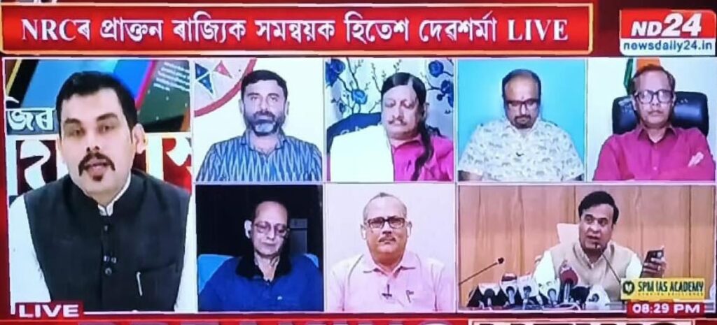 The pertinent issue was recently discussed in a prime time show, hosted by Assamese satellite news channel ND24. Anchored by its chief editor Rajdeep Bailung Baruah, the program was enriched by the presence of Hitesh Devsarma, the immediate successor of Hajela as the State NRC coordinator, Assam Public Works president Aabhijeet Sharma (who approached the SC for updating of NRC in Assam), party representatives Shiladitya Deb (Bharatiya Janata Party) and Ratul Patowary (Indian National Congress).