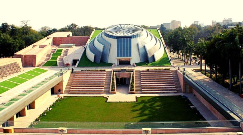 The design of the museum building is inspired by the story of rising India, shaped and moulded by the hands of its leaders. The design incorporates sustainable and energy conservation practices. No tree has been felled or transplanted during the course of work on the project.