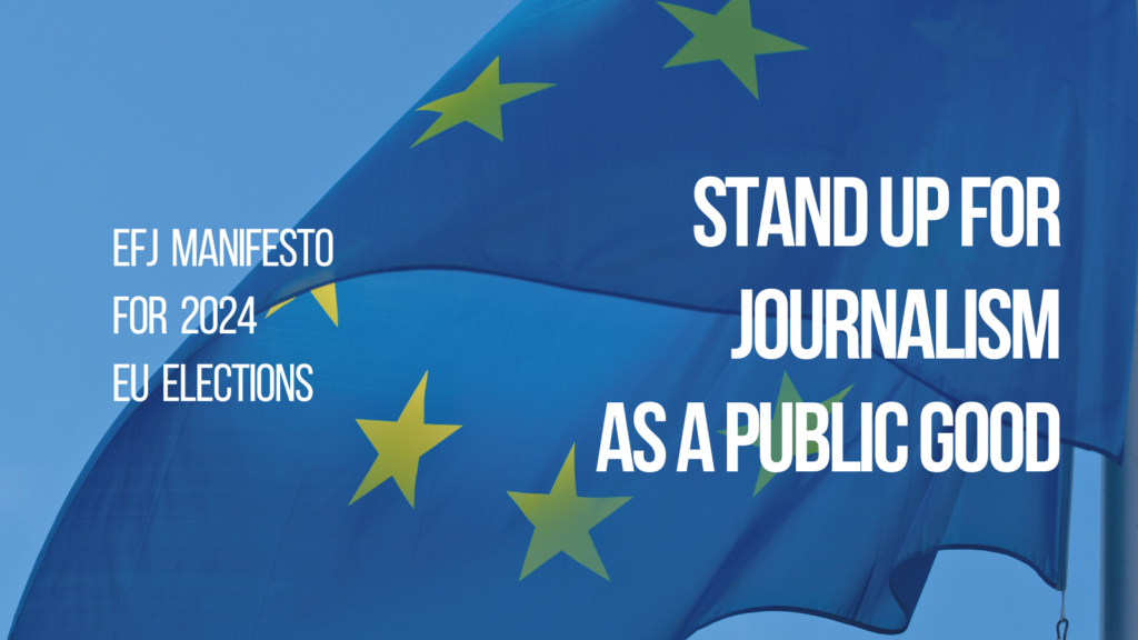 The European Federation of Journalists (EFJ) launched its Manifesto ahead of the 2024 EU Elections. With the motto “Stand up for journalism as a public good”, the EFJ and its affiliates aim to raise awareness about the need for a strong European Union, committed to working for trade union and human rights, the rule of law, media freedom and media pluralism.