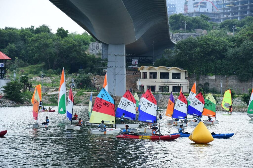 The HMDA and GHMC in collaboration with the Yacht Club of Hyderabad will be launching a Waterschool to teach Sailing , Kayaking , Windsurfing , Standup padding and allied water sports at Durgam Cheruvu.